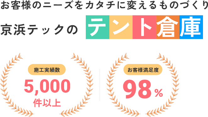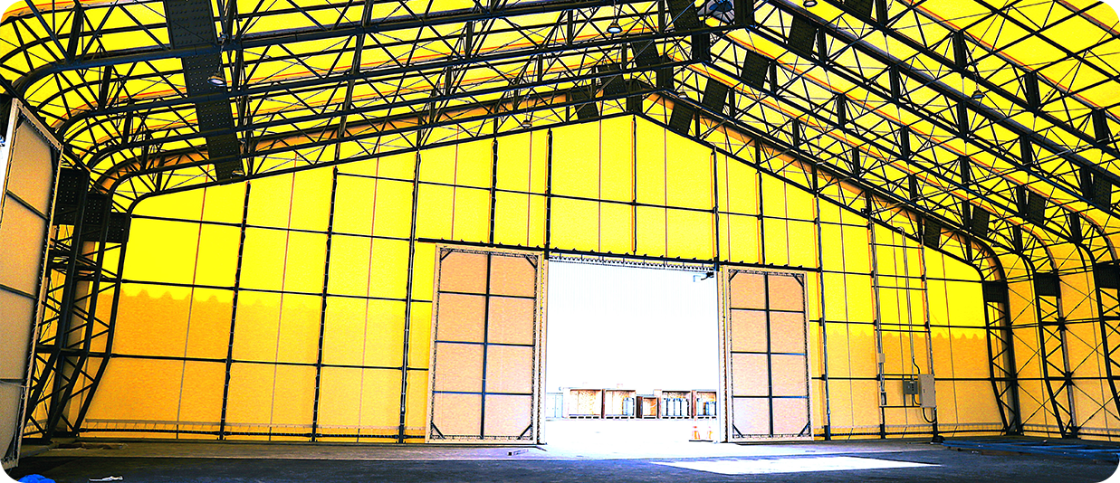 テント倉庫の製作・施工あたり多数の技術者が対応