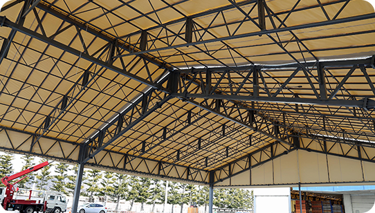 テント倉庫基準では30mまで中柱がない設計ができるので、自由な空間設計が可能です。