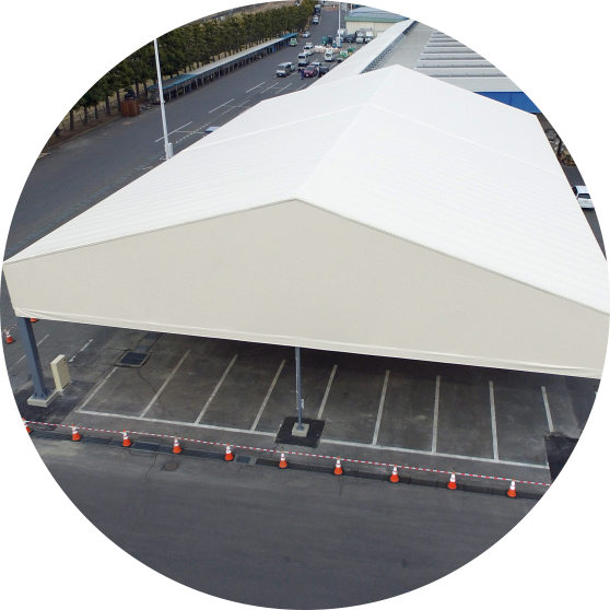 国土交通省告示第666号と技術基準に適合した、安全で高強度な建築をします。出荷場・荷物の仮置き・車両からの荷捌きなど、様々な用途で使用できます。